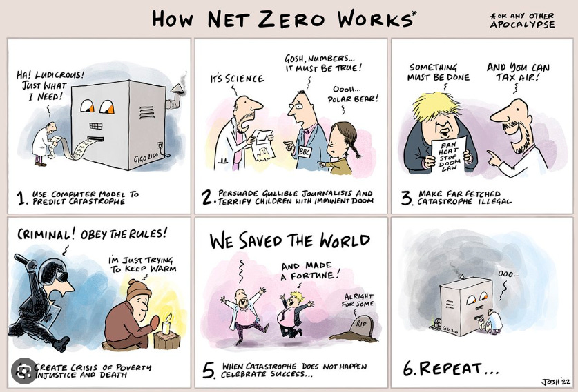The real stupidity lies in the fact that this green transition isn’t even global—it’s a Western luxury. Windmills and EVs are subsidised Veblen goods. While Europe and the US drive up energy prices and deindustrialise in the name of net zero, China and India are building hundreds of new coal plants, laughing as they undercut European economies with cheap power. Germany, once an industrial powerhouse, is now begging for LNG imports after betting its future on Russian gas and unreliable renewables. The UK, crippled by energy costs, watches its factories flee to places where politicians aren’t sabotaging their own energy security. Net zero isn’t saving the planet—it’s a wealth transfer from the West to its competitors, all while doing little to actually reduce global emissions.