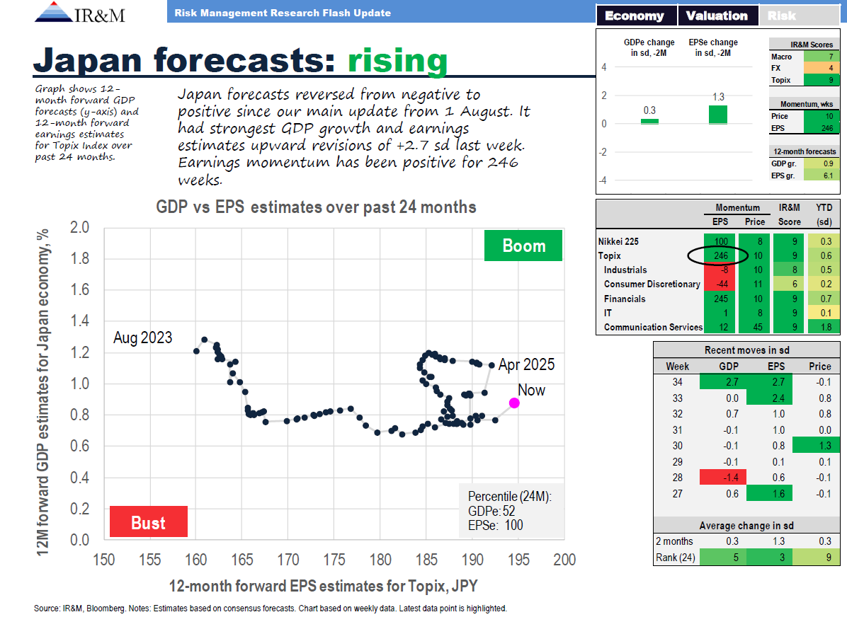 In Japan, for example, analysts are falling over themselves revising upwards both GDP growth forecasts as well as earnings estimates: