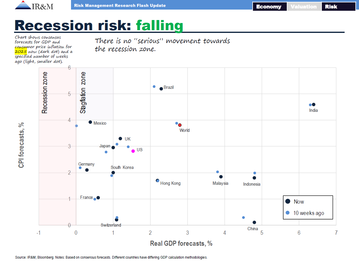 There will, of course, be a next recession. Currently, though, recession probability is low and not rising in earnest: